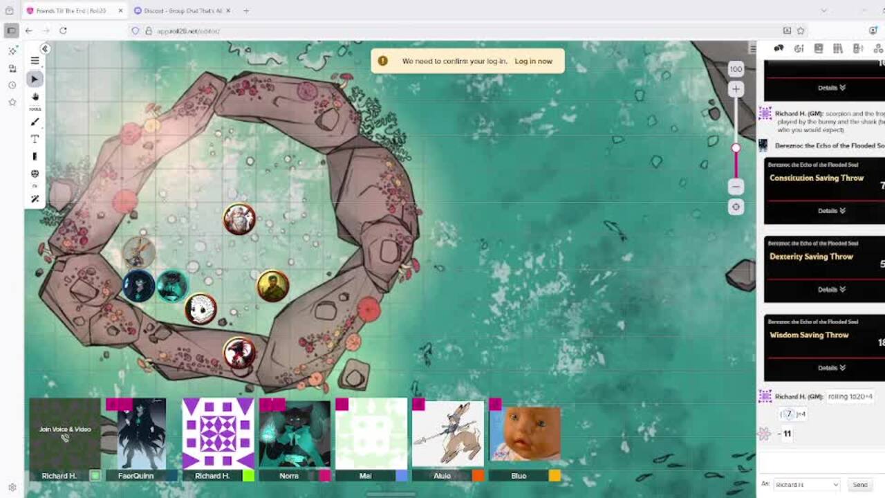 The Party discuss using magical bells to capture souls and prevent them from being consumed by a demon named Elias. There are conversations about interacting with gods, fighting demons, and moral quandaries. One character struggles with a sentient dagger that is influencing their actions. The players also discuss game mechanics, leveling up characters, and scheduling future sessions.